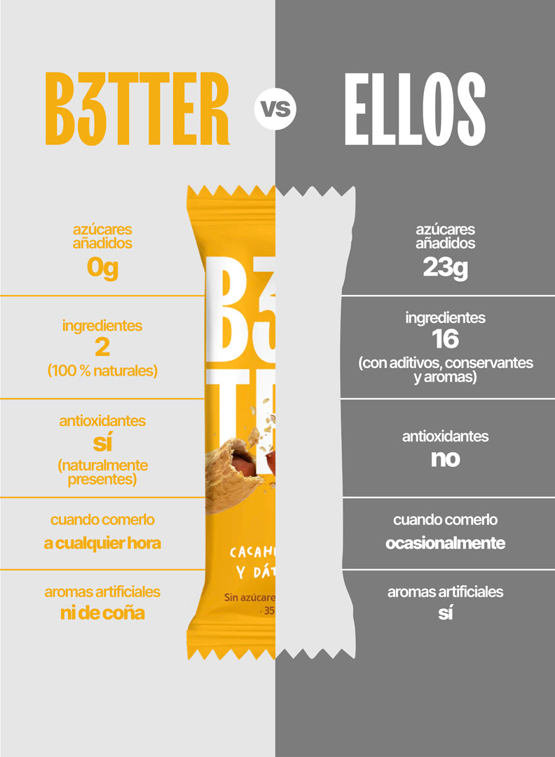 Disfruta de un delicioso snack saludable siempre que quieras. No entenderás como se puede hacer una barrita tan sabrosa con solo dos ingredientes. 35g.