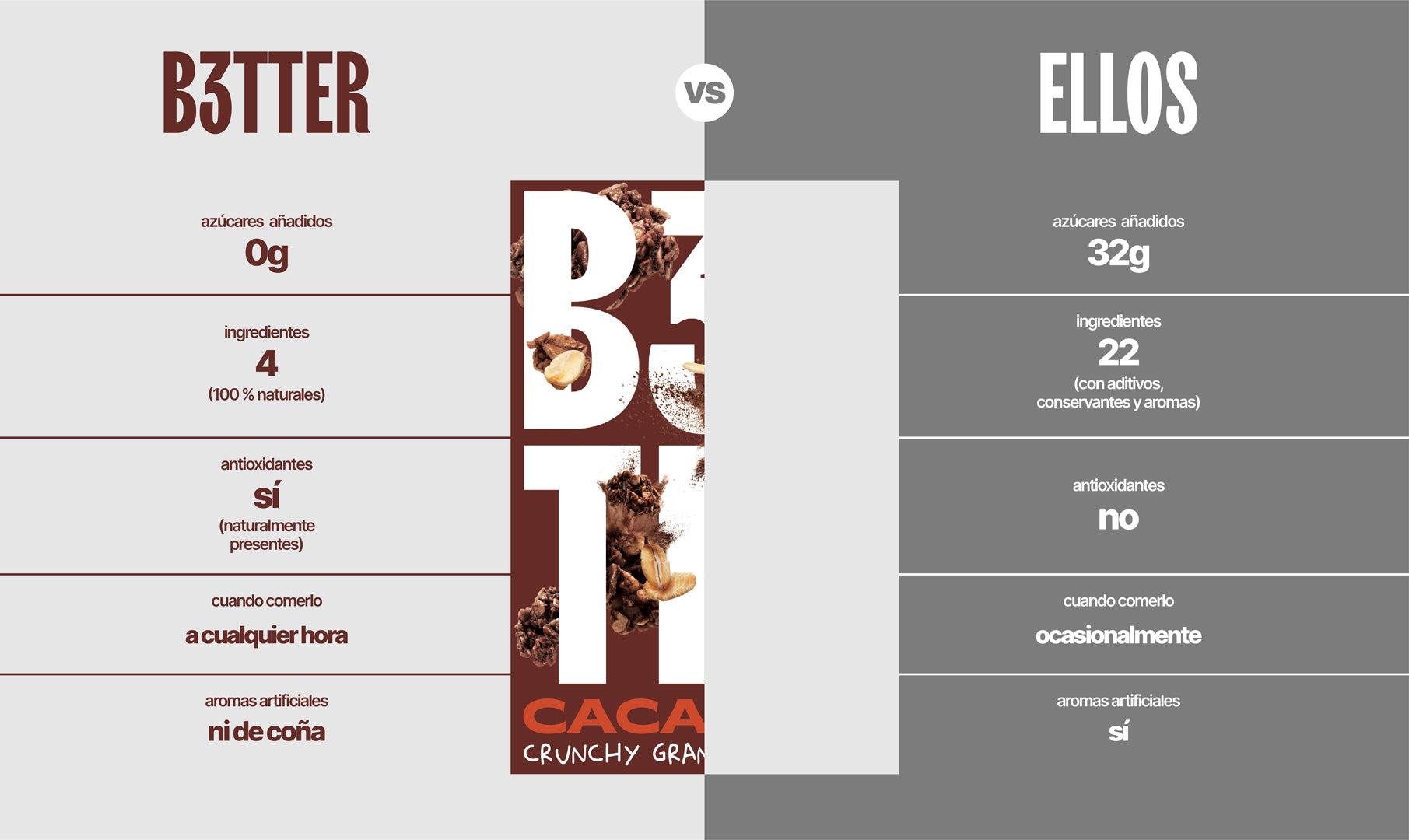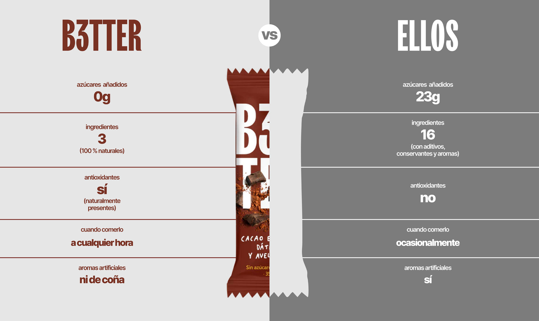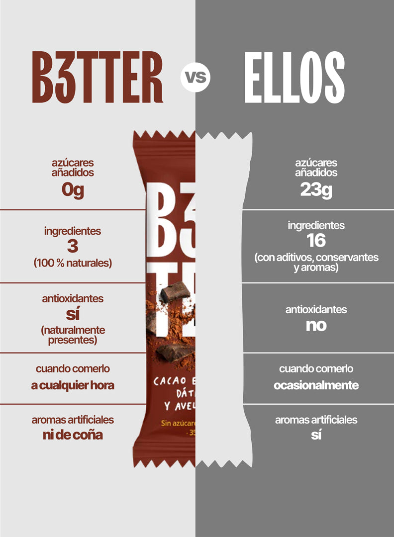 Avena 51%, dátil 31%, avellana 10%, cacao 8%