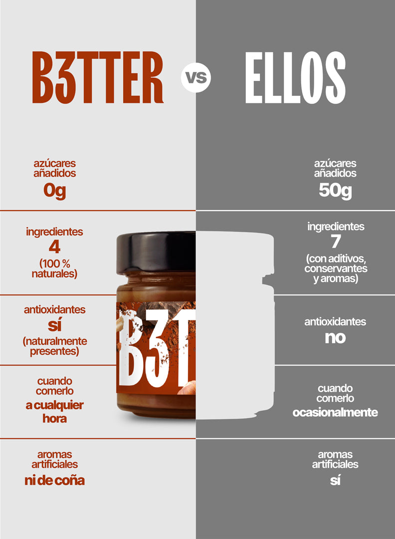 Avellana 52%, dátil, cacao 7%, aceite de oliva virgen extra